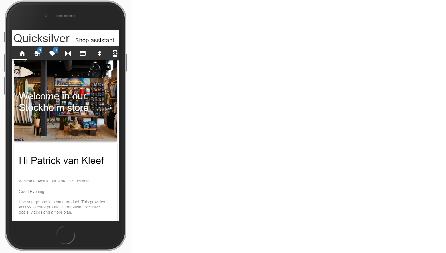 In order to provide an optimal shopping experience, the customer uses the shop assistant (progressive web app) app inside the store. When a customer enters the store the current store is detected by using WiFi or GPS depending on which service is available. The app displays the customer information about the store and personalized offers based on their shopping behavior on the available storefronts. Customers can’t find all the information about a product in the store itself. For that reason, customers are using their smartphones to read more about a product or watch a video. To provide a seamless shopping experience customers can use the shop assistant app to tap a product and get more inspirational content, available variations or they can pay (using the payment request API) for the products inside the store.